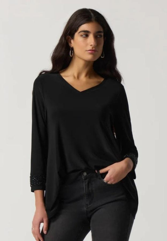 Joseph Ribkoff 233079 Black V-Neck Embellished Cuff Tunic Top