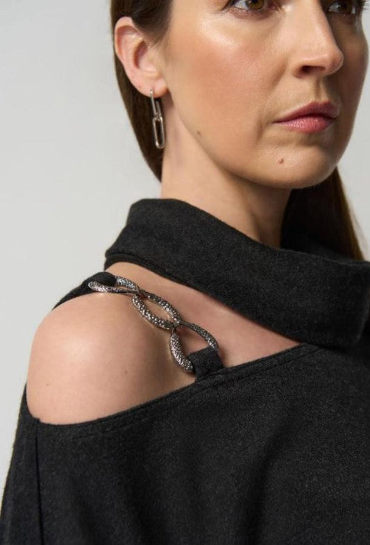 Joseph Ribkoff 233093 Charcoal Grey Dolman Sleeve Sweater Knit Top
