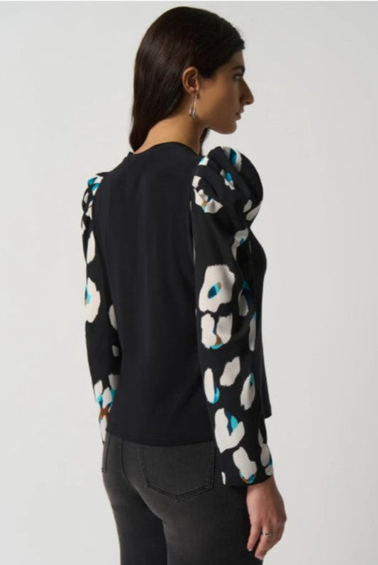 Joseph Ribkoff 233149 Black/Multi-Color Print Puff Sleeve Top