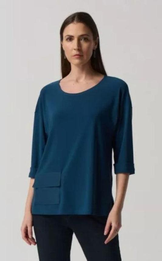 Joseph Ribkoff 233186 Nightfall Blue 3/4 Sleeve Front Pocket Boxy Top