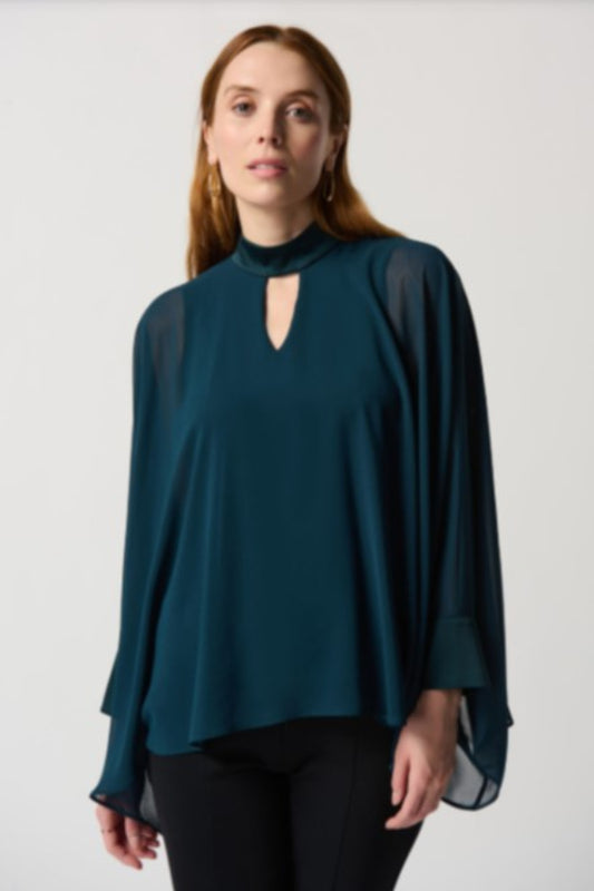 Joseph Ribkoff 234245 Alpine Green Chiffon Keyhole Neck Top