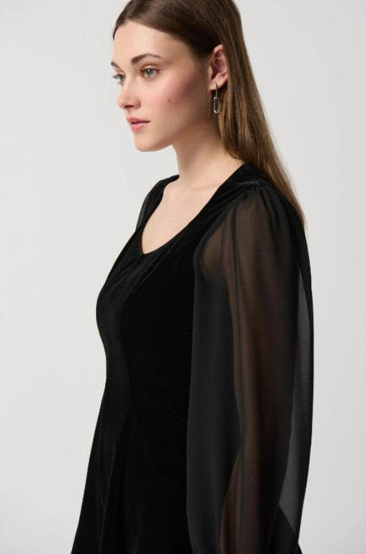 Joseph Ribkoff 234277 Black Puff Sleeve High-Low Top