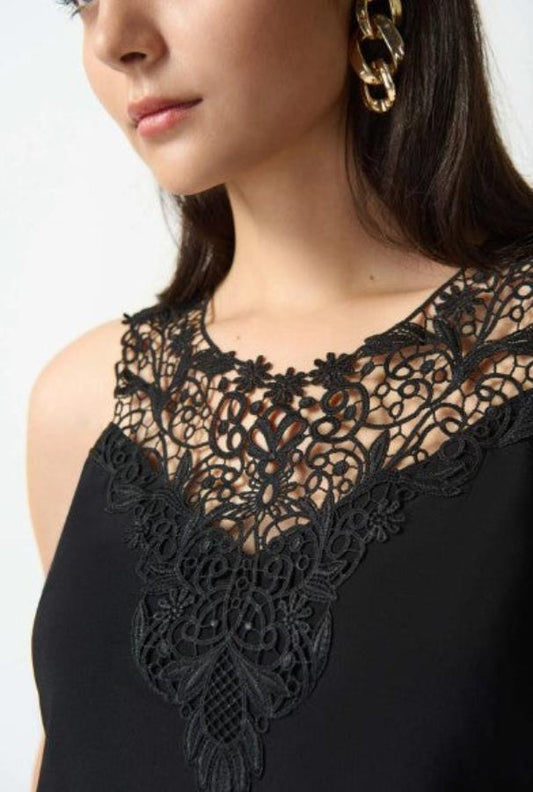 Joseph Ribkoff 242088 Black Lace Neck Detail Sleeveless Top