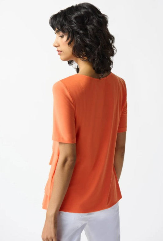Joseph Ribkoff 242214 Mandarin Tiered Ruffle Short Sleeve Top