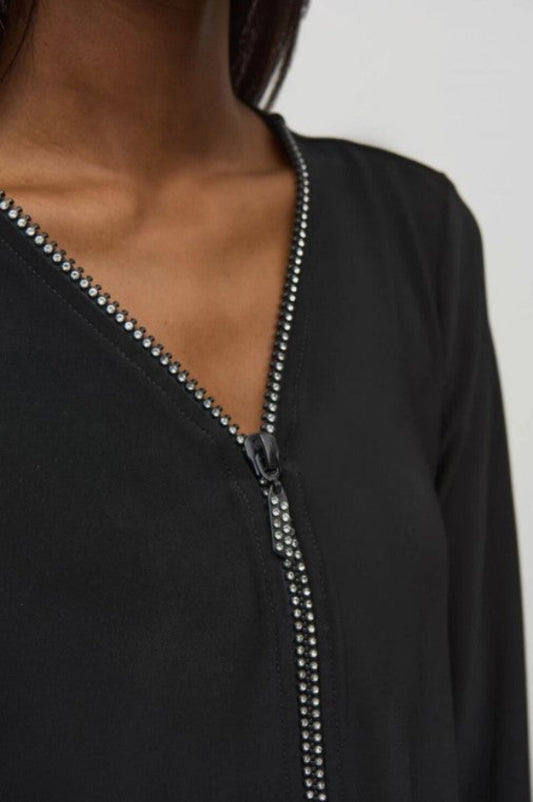 Joseph Ribkoff 244026 Black Embellished Zip V-Neck High-Low Tunic Top