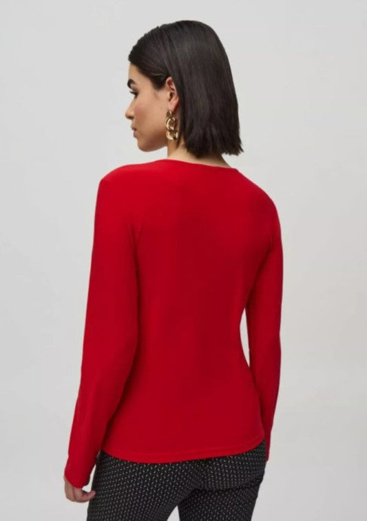 Joseph Ribkoff 244066 Lipstick Red Mesh Round Neck Fitted Top