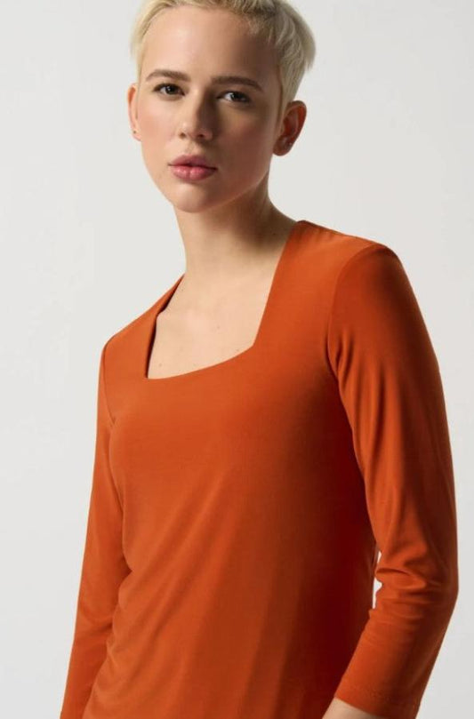 Joseph Ribkoff 233185 Tandoori Orange Square Neck 3/4 Sleeve Top