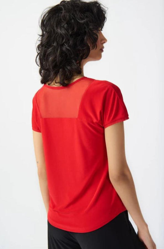 Joseph Ribkoff 241088 Radiant Red Sheer Insert V-Neck Short Sleeve Top