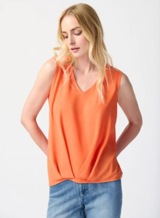 Joseph Ribkoff 241133 Mandarin Pleated Front V-Neck Sleeveless Top