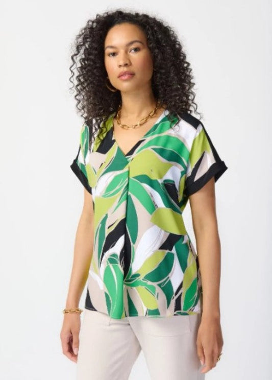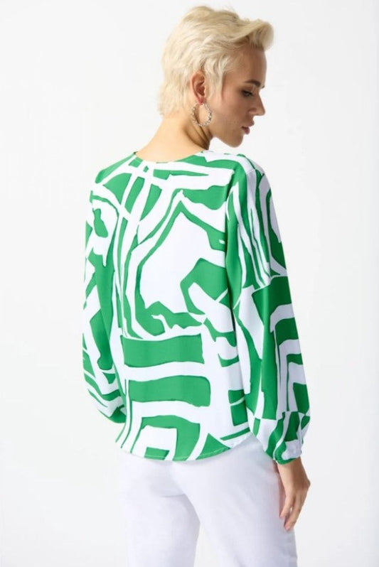 Joseph Ribkoff 242121 Green/Vanilla Abstract Print Puff Sleeve Top