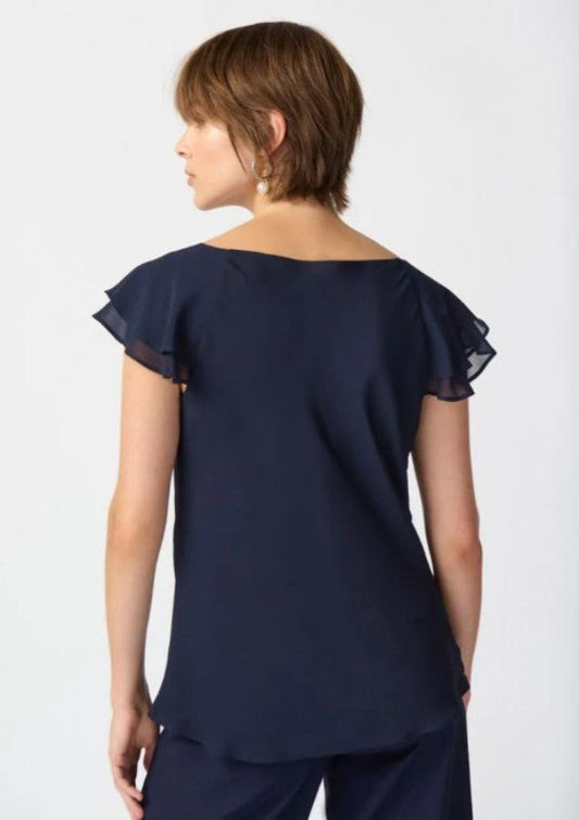 Joseph Ribkoff 241177 Midnight Blue Cowl Neck Tiered Flutter Sleeve Top