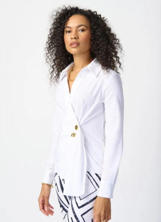 Joseph Ribkoff 241181 Optic White Pleated Wrap Front Long Sleeve Top