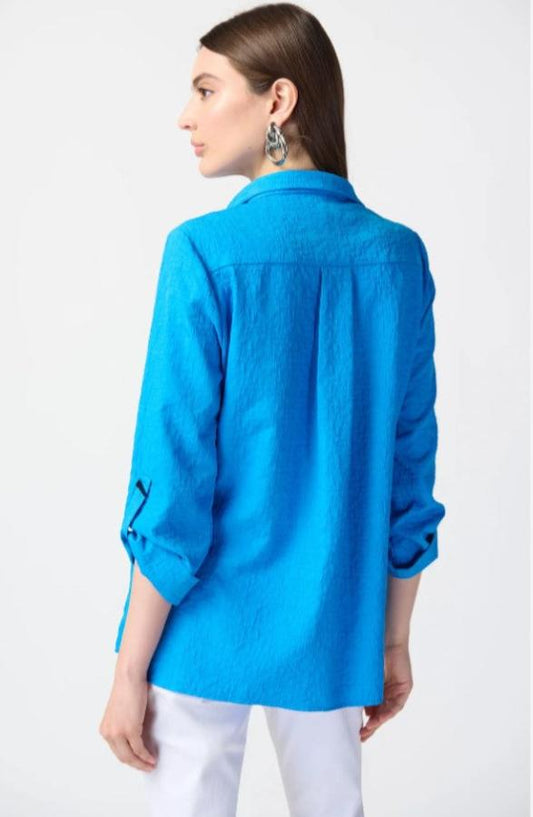Joseph Ribkoff 241183 French Blue Crinkled Roll-Tab Sleeve Top