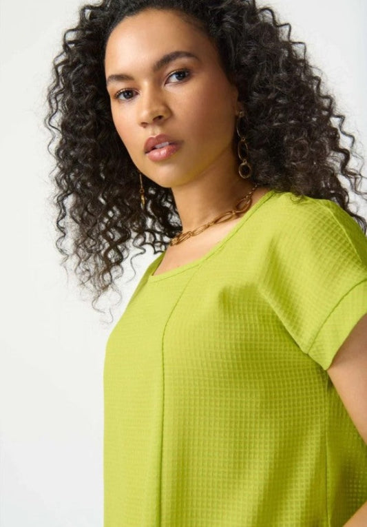 Joseph Ribkoff 241217 Key Lime Check Textured Short Sleeve Boxy Top
