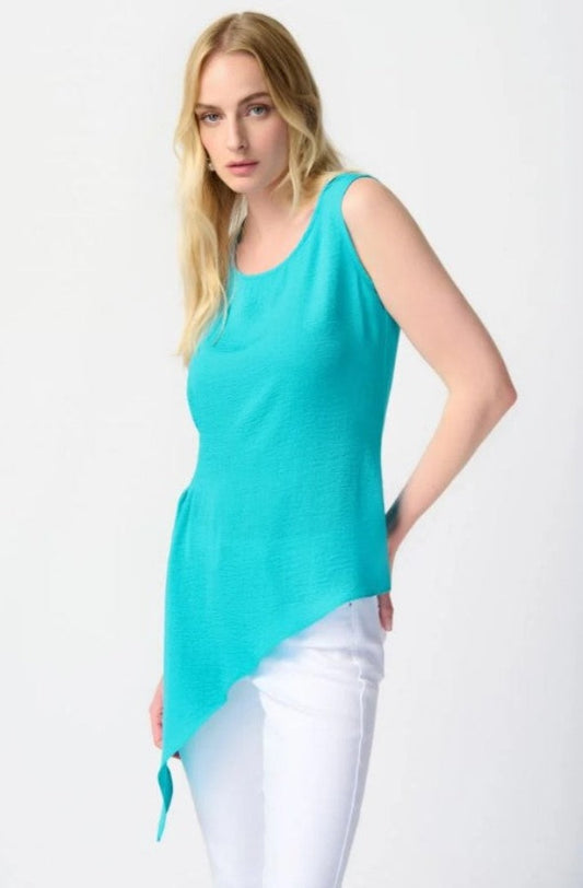 Joseph Ribkoff 241238 Seaview Asymmetric Gauze Sleeveless Tunic Top