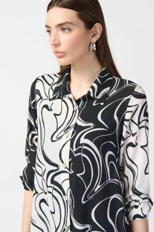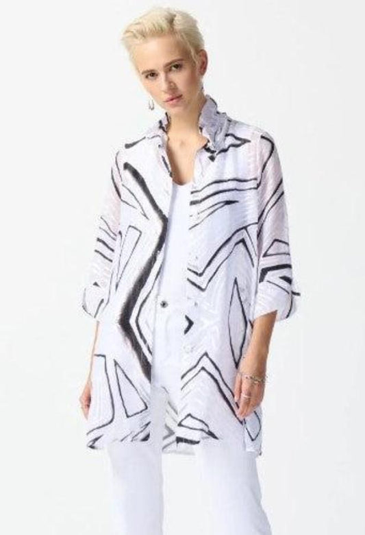 Joseph Ribkoff 242171 White/Black Abstract Print 3/4 Sleeve Organza Top