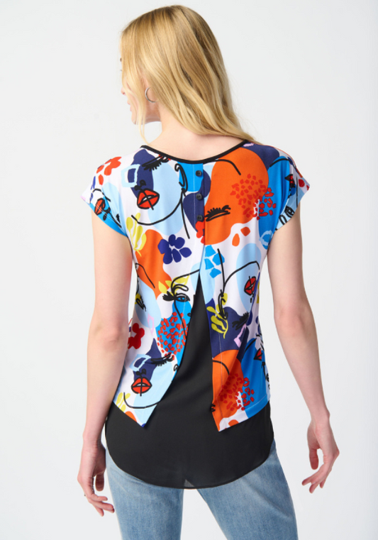 Joseph Ribkoff 241308 Vanilla/Multi Abstract Face Print Hi-Low Top