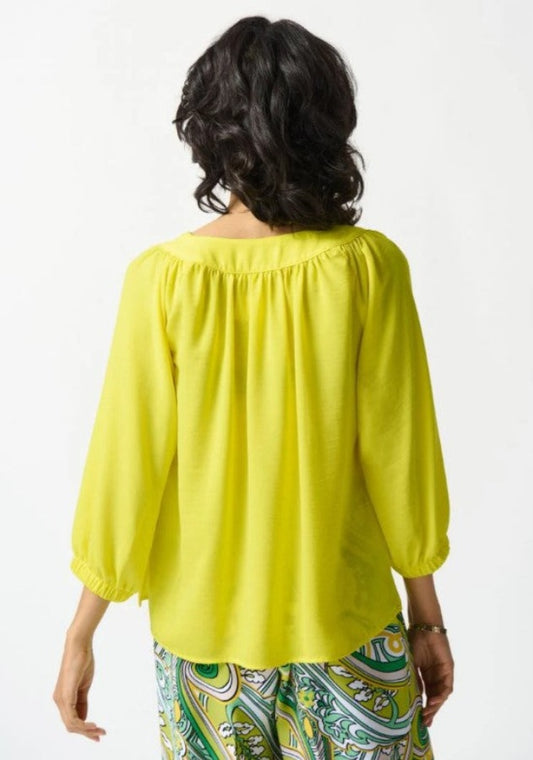 Joseph Ribkoff 242062 Sunlight Yellow V-Neck 3/4 Sleeve Peasant Gauze Top