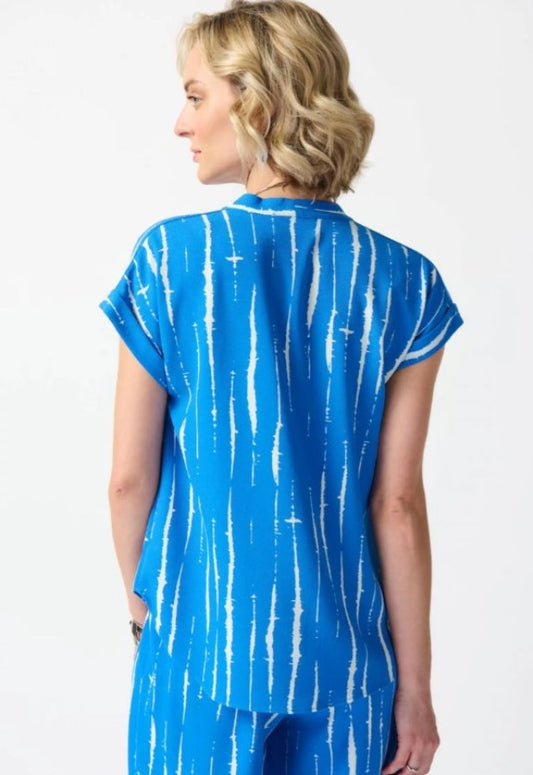 Joseph Ribkoff 242063 Blue/White Abstract Print V-Neck Short Sleeve Top