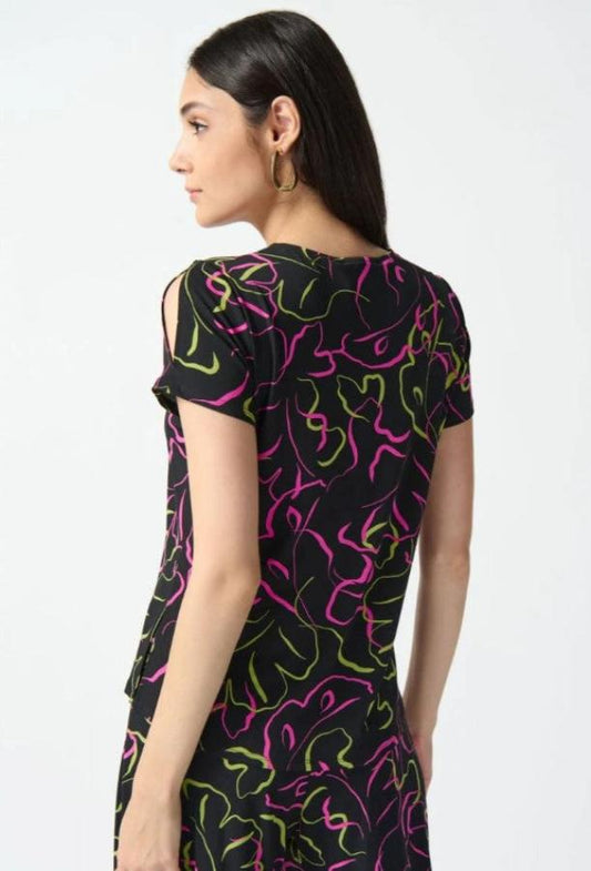 Joseph Ribkoff 242097 Black/Multi Abstract Print Short Sleeve Top