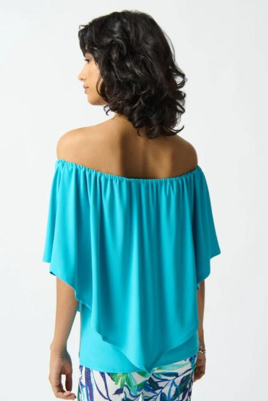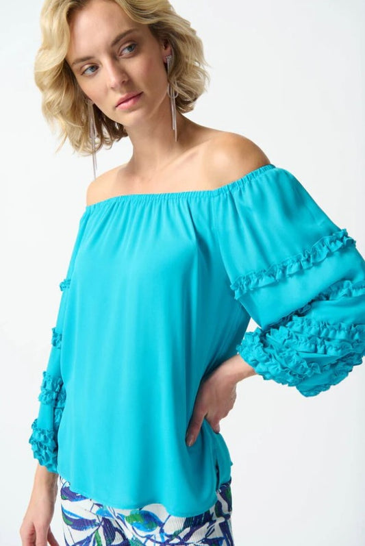 Joseph Ribkoff 242127 Aquamarine Off-Shoulder 3/4 Puff Sleeve Top