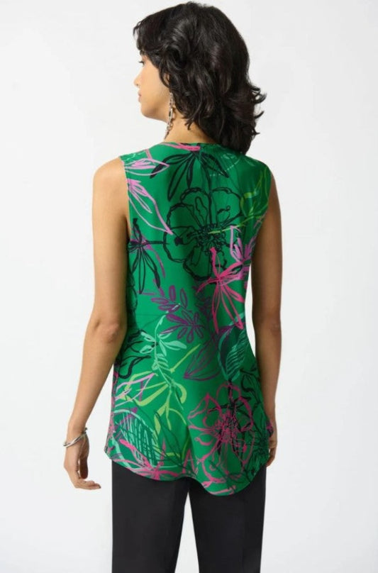 Joseph Ribkoff 242235 Green/Multi Floral Print Zip Front Tunic Top