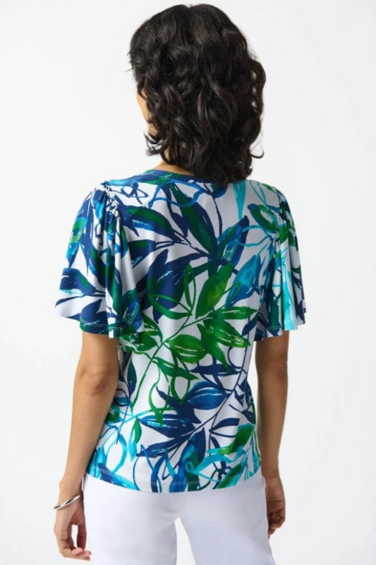 Joseph Ribkoff 242183 Vanilla/Multi Tropical Print Flutter Sleeve Top
