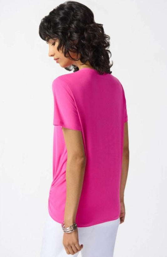 Joseph Ribkoff 242199 Ultra Pink Ruched Ring Detail Crew Neck Top