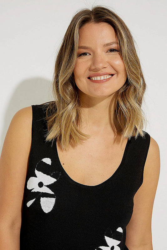 Joseph Ribkoff 231941 Black/Vanilla Floral Print Sleeveless Knit Top