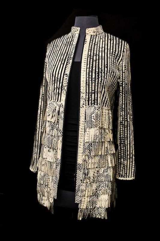 ABF 11910096 Cream Python Print 7-Layer Fringe Leather Jacket