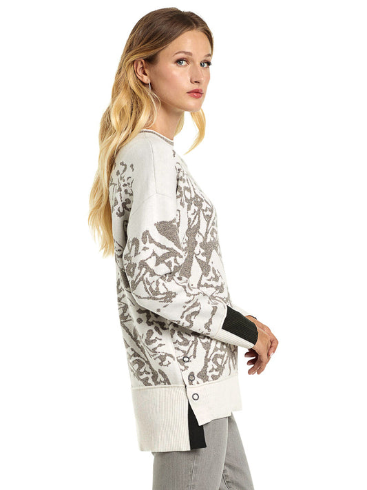 Nic + Zoe H201141 Neutral/Multi-Color Printed Knit Sweater Top