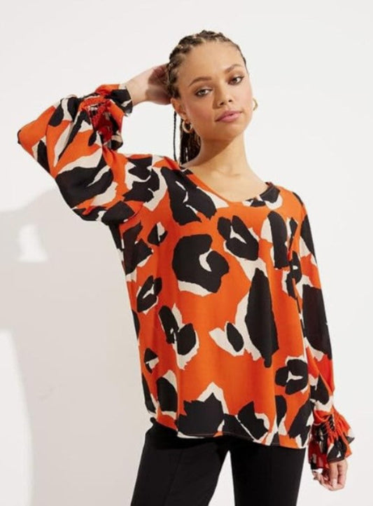 Joseph Ribkoff 233201 Tandoori/Multi Animal Print Shirred Puff Sleeve Top