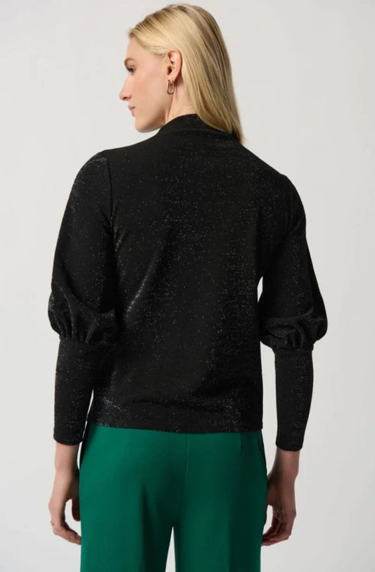Joseph Ribkoff 234186 Metallic Mock Neck Puff Sleeve Top
