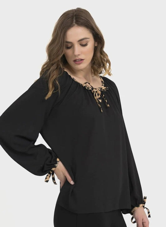 Joseph Ribkoff Black Top With Animal Trim Detail 194230