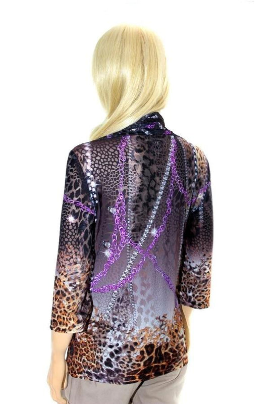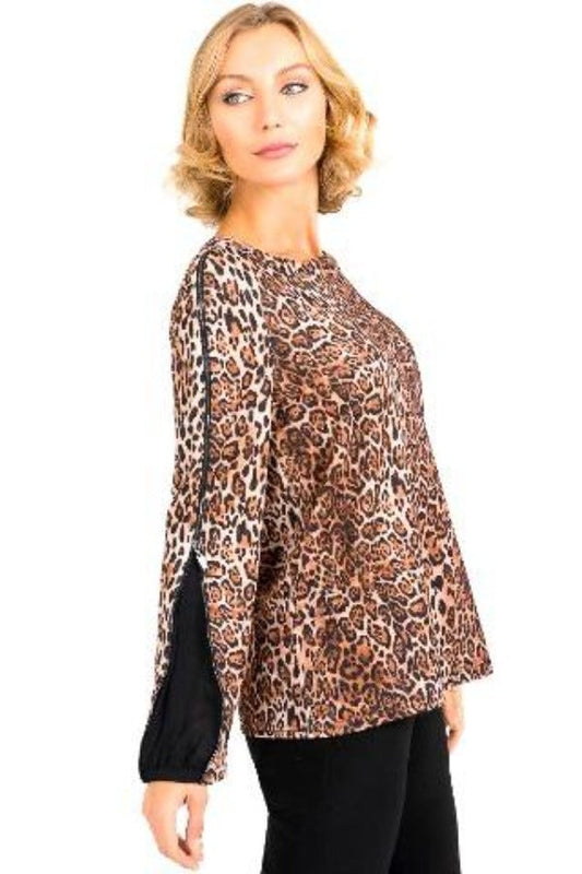 Joseph Ribkoff Black/Brown Animal Print Zipper Detail Top 193559