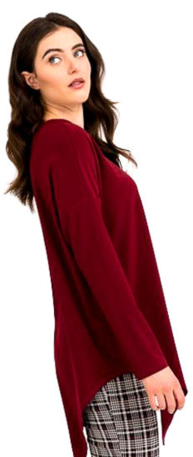 Joseph Ribkoff Imperial Red Long Sleeve Pointed Hem Top 194104