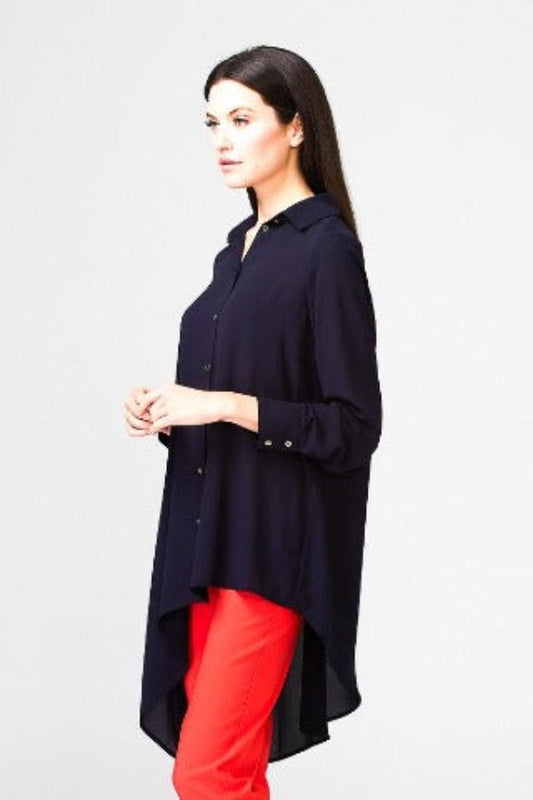 Joseph Ribkoff Midnight Blue Button-Down Bias-Cut Top 194233