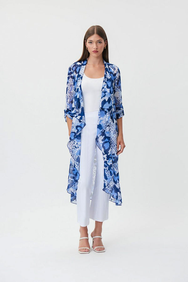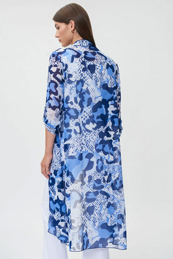 Joseph Ribkoff 232089 Blue/Vanilla Animal Print Longline Cover-Up Jacket