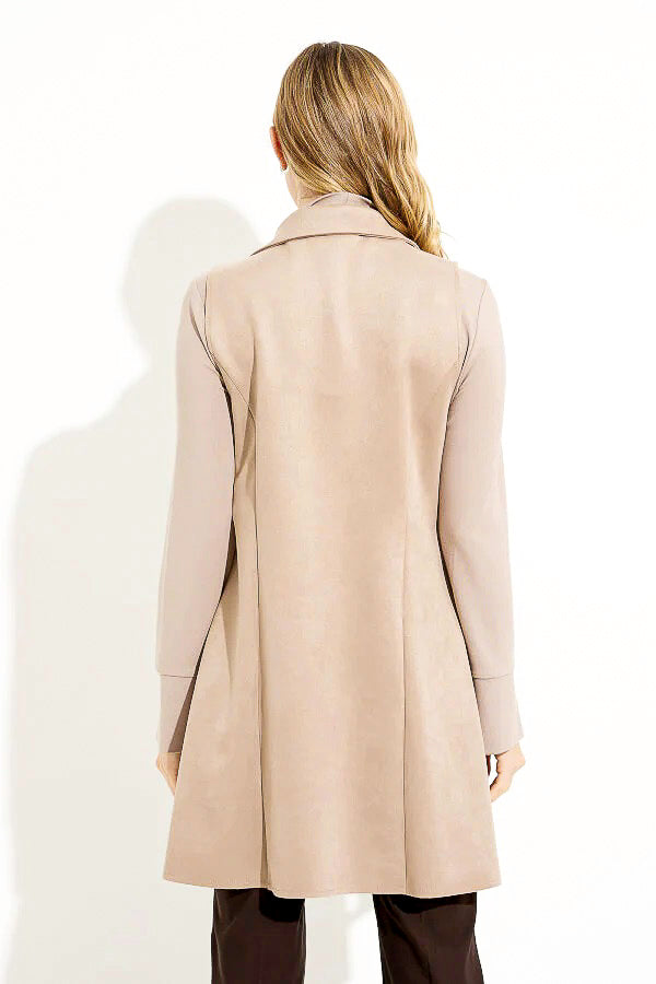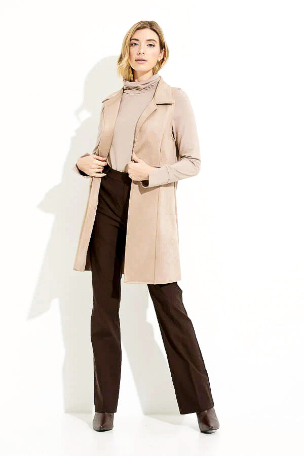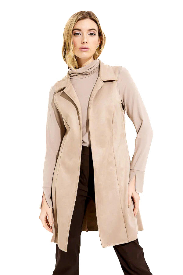Joseph Ribkoff 233300 Latte Faux Suede Open Front Longline Vest