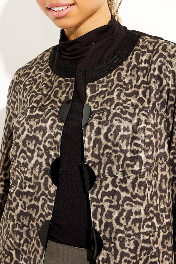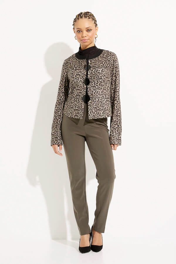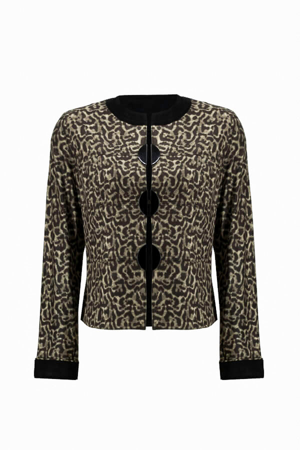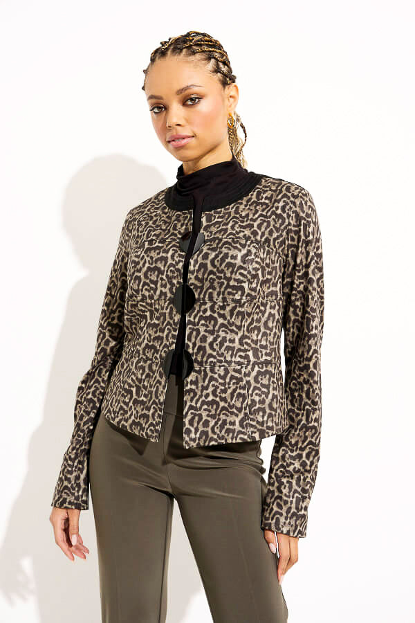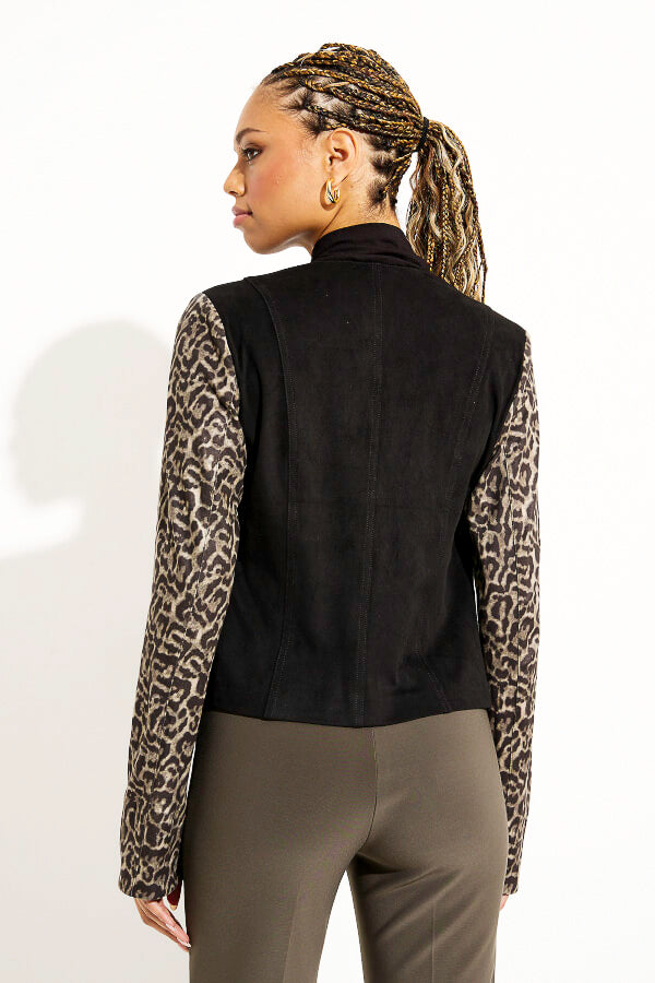 Joseph Ribkoff 233953 Black/Beige Animal Print Faux Suede Jacket