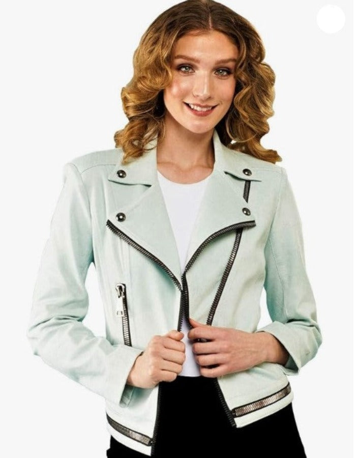 Lena Gabrielle Mint Zipper Detail Pleather Jacket BCJ9033BL